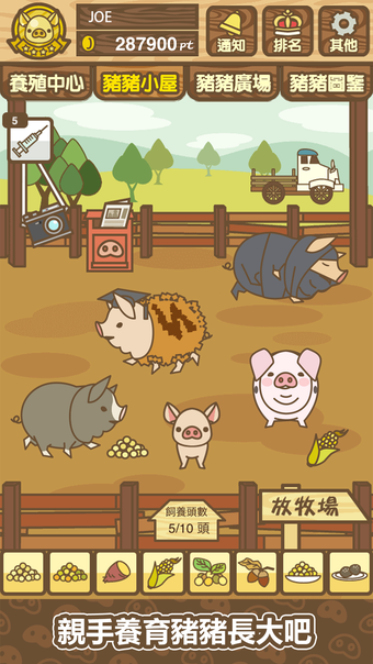 مع تقدمك ورفع مستواك، يمكنك فتح سلالات أكثر ندرة لإضافتها إلى مزرعتك وزيادة أرباحك. ومع ذلك، تربية الخنازير ليست مهمة سهلة. يجب عليك الاهتمام بنظام غذائهم، والحفاظ على أقفاصهم نظيفة، وحتى الذهاب في صيد الخنازير لاقتناء المزيد منها. مع وجود أدوات وعناصر متنوعة في تصرفك، مثل مرشحات الهواء والحلزون البطيء الحركة، يمكنك جعل عملية تربية الخنازير أكثر كفاءة.