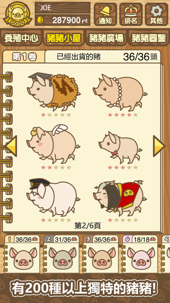 مع وجود موسوعة شاملة للخنازير، يمكنك تتبع جميع الخنازير التي قمت بتربيتها وخصائصها الفريدة. يمكنك حتى المنافسة مع مربي الخنازير الآخرين في جميع أنحاء البلاد لمعرفة من يمكنه كسب أكبر أرباح أو تربية أفضل خنازير. بشكل عام، مزرعة الخنازير MIX هي لعبة ممتعة وساحرة لأي شخص يحب الحيوانات اللطيفة ومحاكيات الزراعة.